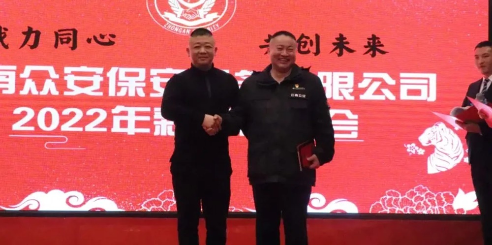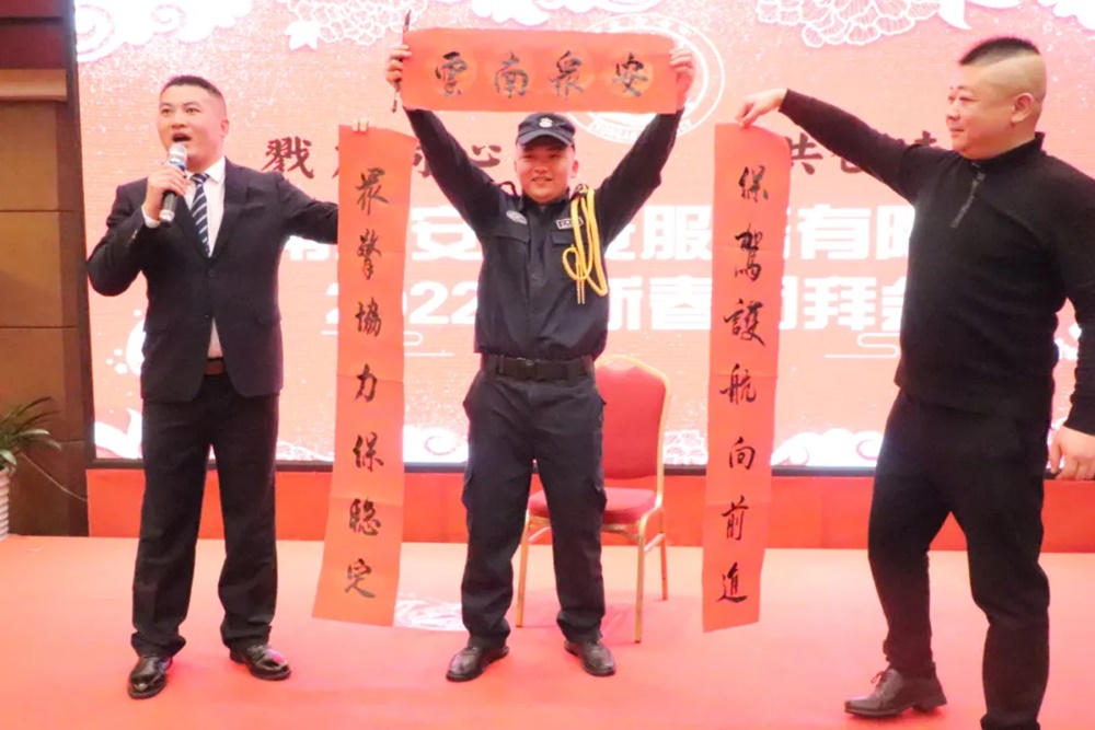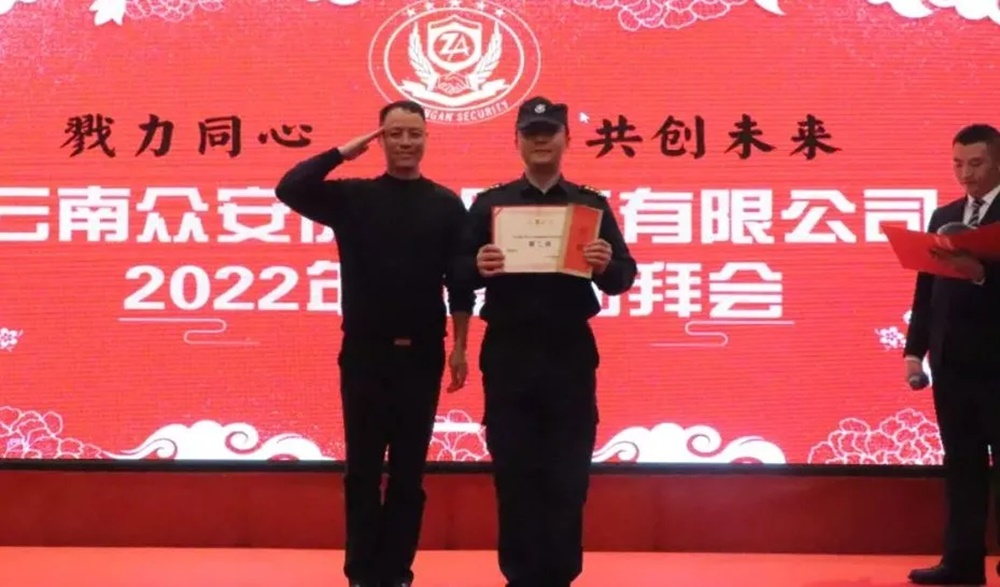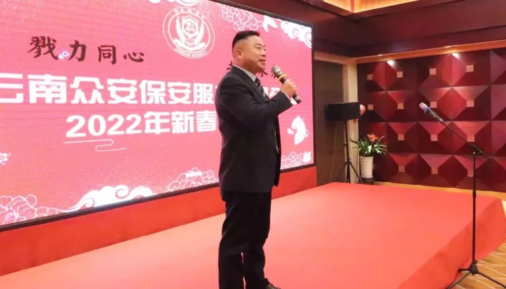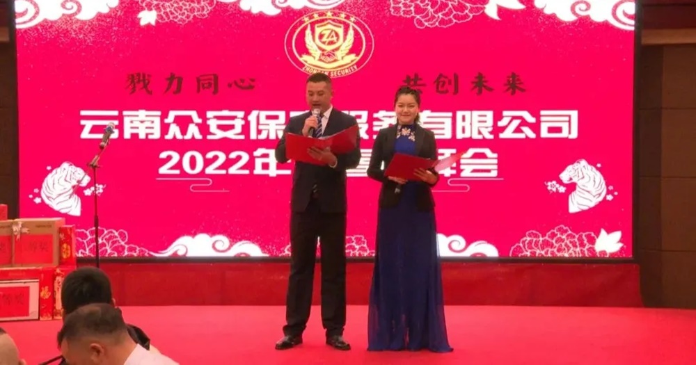 2021年(nian)疫情尚未(wei)結束(shu),經濟形勢依然嚴峻(jun),云(yun)南(nan)眾(zhong)安(an)保安(an)服(fu)務有(you)限公(gong)司面對困難,全(quan)體員工上(shang)下一(yi)心(xin)、團結一(yi)致、砥(di)礪(li)前(qian)行。為(wei)確(que)保2021年(nian)工作圓滿收官(guan),喜(xi)迎2022年(nian)的(de)良(liang)好開局,弘(hong)揚眾(zhong)安(an)保安(an)“紅色(se)軍創,匠心(xin)精神(shen)”,為(wei)全(quan)體員工營(ying)造(zao)豐富文化活動(dong),云(yun)南(nan)眾(zhong)安(an)保安(an)服(fu)務有(you)限公(gong)司于2022年(nian)1月26日,在昆明云(yun)天花苑酒店隆重舉(ju)行主題為(wei)“勠力同(tong)心(xin)共創未(wei)來(lai)”的(de)公(gong)司2021年(nian)團拜會,公(gong)司100多人中(zhong)層以(yi)上(shang)干部歡(huan)聚(ju)一(yi)堂,共賀新春佳節,共話美好未(wei)來(lai)。