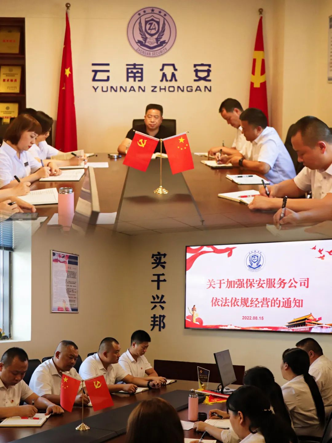 8月15日,根(gen)據公(gong)安(an)機關(guan)監管(guan)部(bu)門(men)要求(qiu),朱邦瑞(rui)同志第一時間回(hui)到公(gong)司(si)傳達精神抓(zhua)落實。組織(zhi)公(gong)司(si)高管(guan)、各分(fen)部(bu)管(guan)理骨干(gan)學習公(gong)安(an)機關(guan)下(xia)發的(de)“關(guan)于加強保安(an)服務公(gong)司(si)依法規(gui)范經營(ying)的(de)通知”的(de)內容(rong)開(kai)展學習。