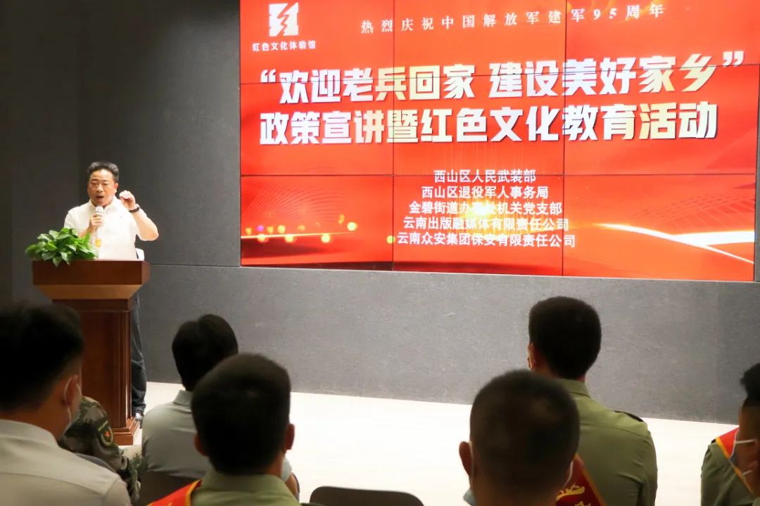為(wei)弘揚(yang)退(tui)(tui)役(yi)(yi)老(lao)兵退(tui)(tui)伍不褪色、永遠(yuan)跟黨走的家(jia)國情懷,激勵(li)退(tui)(tui)役(yi)(yi)軍(jun)(jun)人(ren)轉變(bian)角色,建立新(xin)功。8月5日,昆明市(shi)西(xi)山(shan)區退(tui)(tui)役(yi)(yi)軍(jun)(jun)人(ren)事務局組織退(tui)(tui)役(yi)(yi)軍(jun)(jun)人(ren)在(zai)紅色文化(hua)體(ti)驗館開展“歡迎老(lao)兵回家(jia) 建設美好家(jia)鄉”宣講紅色文化(hua)教育系列活動。西(xi)山(shan)區2022年(nian)由政府組織安(an)置退(tui)(tui)役(yi)(yi)士兵、最美退(tui)(tui)役(yi)(yi)軍(jun)(jun)人(ren)代(dai)表(biao)和西(xi)山(shan)區區軍(jun)(jun)休(xiu)干部、自主擇業(ye)干部、重(zhong)點優撫對象、“軍(jun)(jun)人(ren)之家(jia)”老(lao)兵代(dai)表(biao)等參加了本次活動。