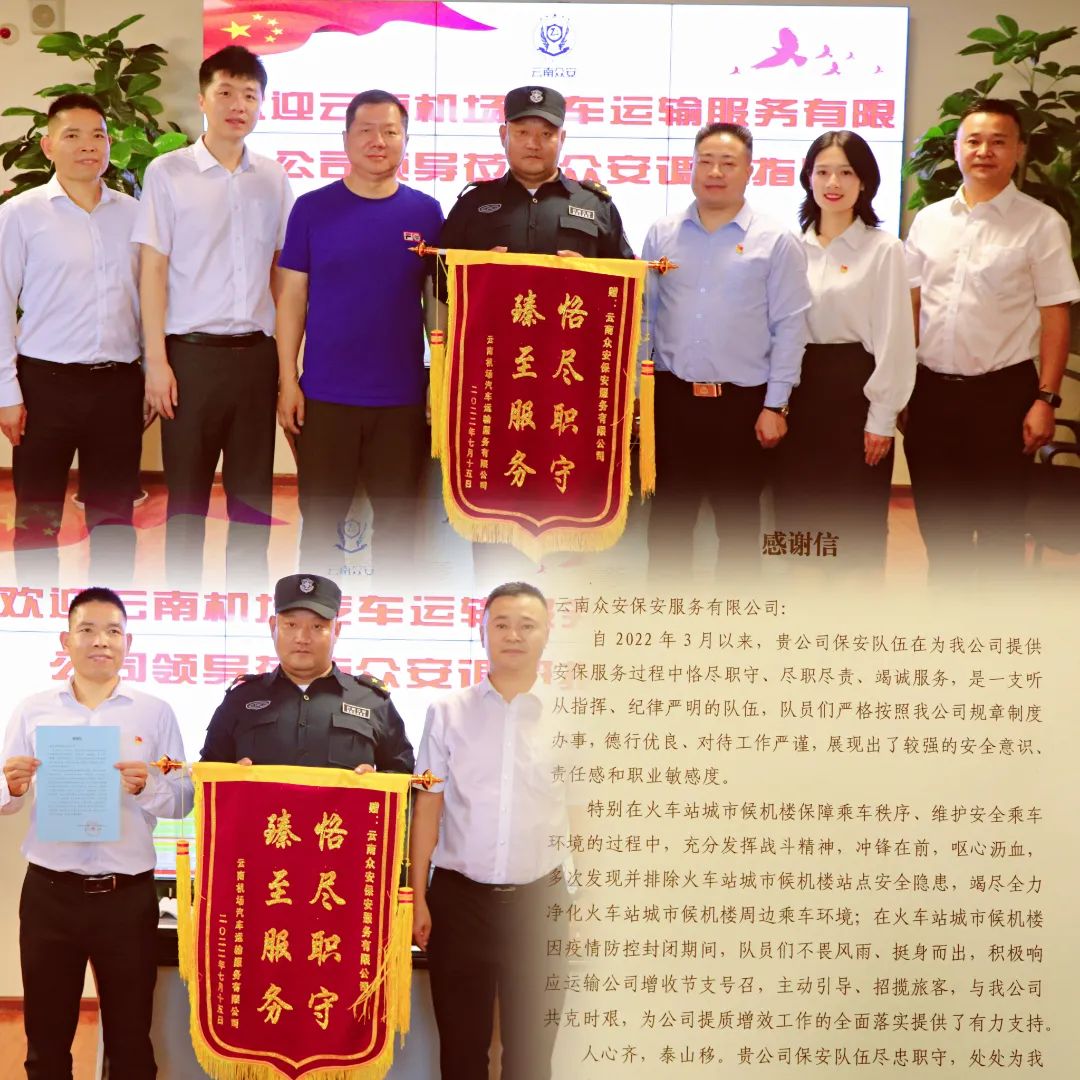 2022騫?鏈?5鏃ワ紝浜戝崡鏈哄満姹借濺榪愯緭鏈嶅姟鏈夐檺鍏徃棰嗗鏉ュ埌浜戝崡浼楀畨闆嗗洟鎬婚儴錛屼唬琛ㄥ鎴峰崟浣嶄負浼楀畨闆嗗洟閫佹潵閿︽棗騫剁粰涓綰夸繚瀹夊憳姝﹀仴鍗塊佹潵浜嗚〃鎵俊銆?/p>