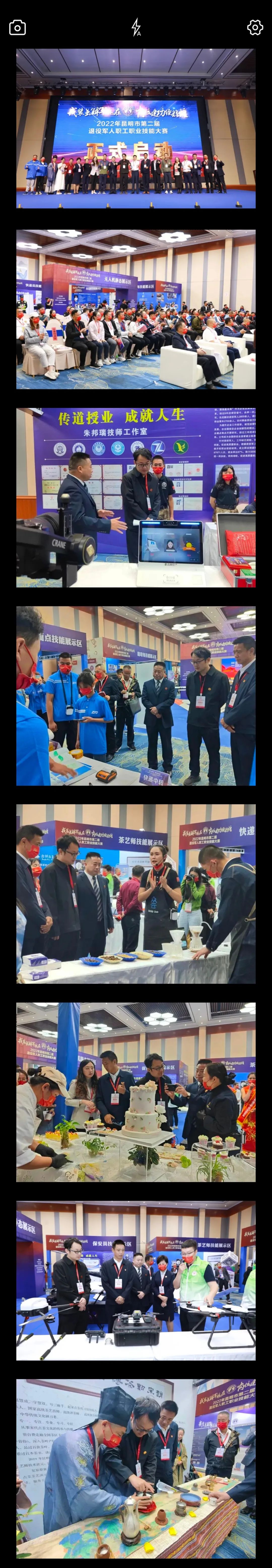 2022年9月23日上午,2022年昆明市第二屆退役軍人職工職業技能大賽在昆明聯邦四季酒店正式啟動,約200人參加了開幕儀式,發布會現場邀請到了保安員、茶藝師、咖啡師、西式面點師、無人機、快遞員六個賽項的技能大師現場展演。