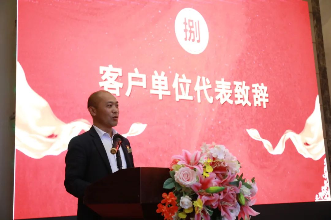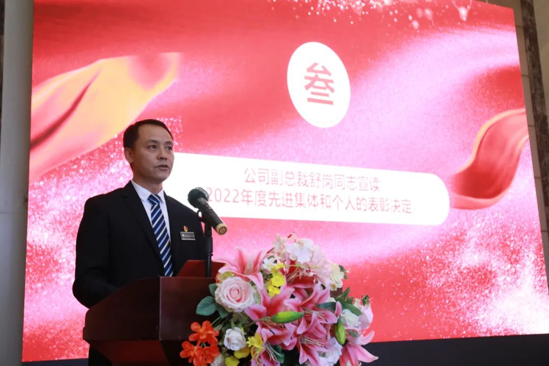 先進集體代表杜忠輝、優秀個人代表胡自平上臺發言,他們表示,2022年取得的成績,和客戶單位、公司領導的關心栽培,各位同事精誠團結、共同努力密不可分,在下一步工作中,將戒驕戒躁,踏實奮進,牢固樹立責任意識,切實加強履職能力,不斷提升服務質量,做到工作盡心、公司放心、客戶安心。