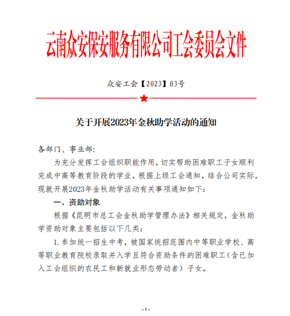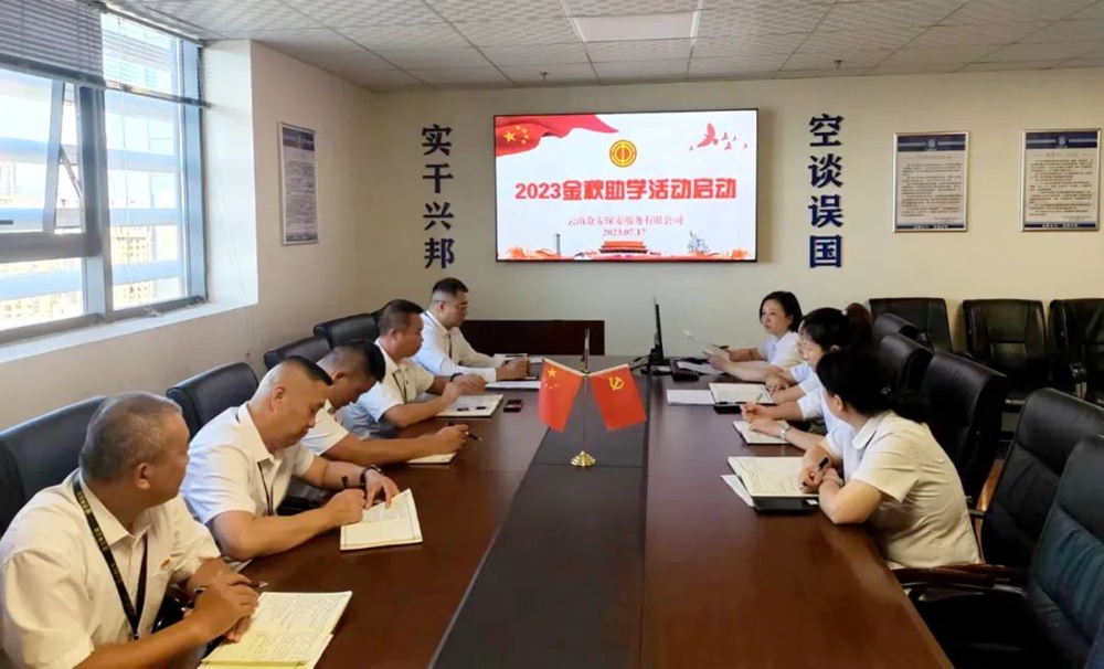 7月(yue)17日上午,云(yun)南眾安保安服務有限公(gong)司舉行2023年(nian)度“金秋(qiu)助(zhu)學(xue)”活動(dong)啟動(dong)儀式,公(gong)司工(gong)(gong)(gong)會(hui)(hui)認真貫徹落(luo)實(shi)《昆明(ming)市總工(gong)(gong)(gong)會(hui)(hui)金秋(qiu)助(zhu)學(xue)管(guan)理(li)辦法》內容,充(chong)分發揮(hui)企業工(gong)(gong)(gong)會(hui)(hui)橋梁紐帶作用,通過精準助(zhu)困讓困難職工(gong)(gong)(gong)子(zi)女圓夢(meng)校園,點燃(ran)家庭希望與夢(meng)想。公(gong)司總裁朱(zhu)邦瑞(rui)、工(gong)(gong)(gong)會(hui)(hui)主席(xi)譚瑩、工(gong)(gong)(gong)會(hui)(hui)副主席(xi)楊(yang)貴喜(xi)、工(gong)(gong)(gong)會(hui)(hui)委員及(ji)領導班子(zi)出席(xi)了儀式。