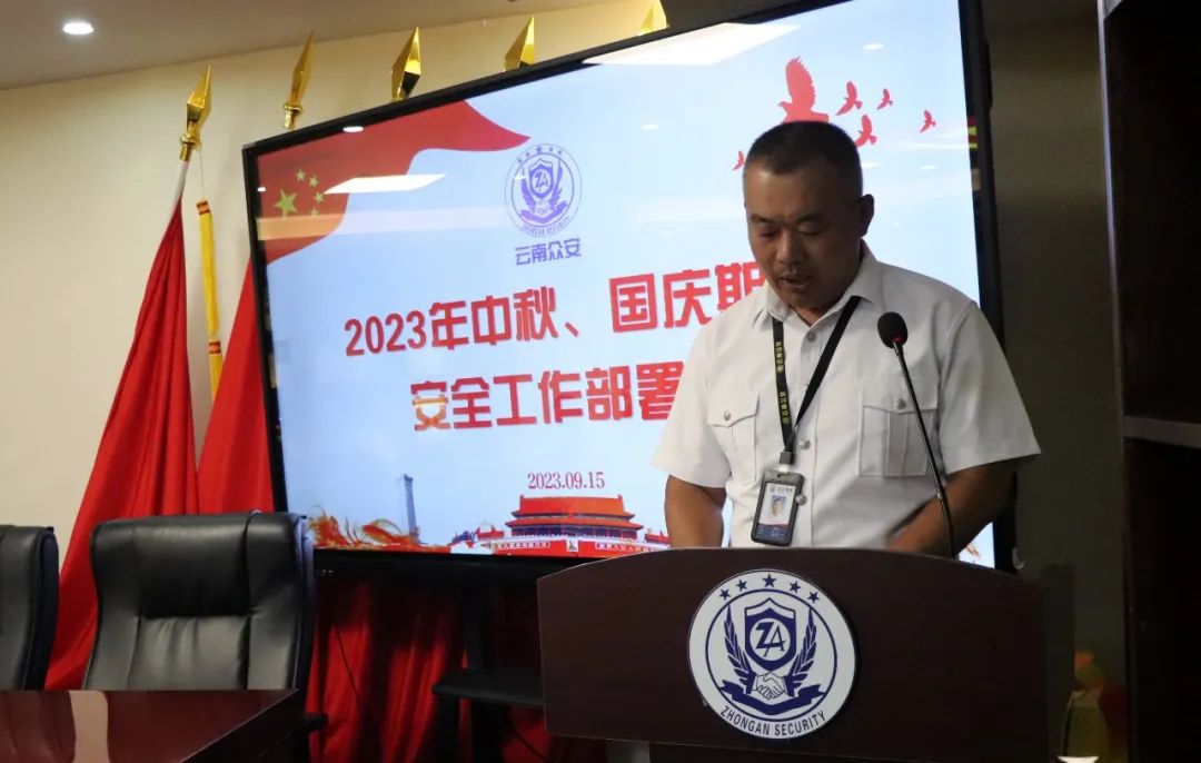 為(wei)切實(shi)筑牢(lao)“兩節”期間黨(dang)風廉潔安(an)全(quan)保(bao)衛工作,嚴格落(luo)實(shi)值班備勤(qin)制度,確保(bao)節日期間公司工作全(quan)面穩定運(yun)行,近日,云(yun)南眾安(an)保(bao)安(an)服務有(you)限(xian)公司召開雙(shuang)節安(an)全(quan)工作部署會(hui),公司領導班子、職(zhi)能部門、網(wang)點(dian)大隊長參加會(hui)議(yi)。